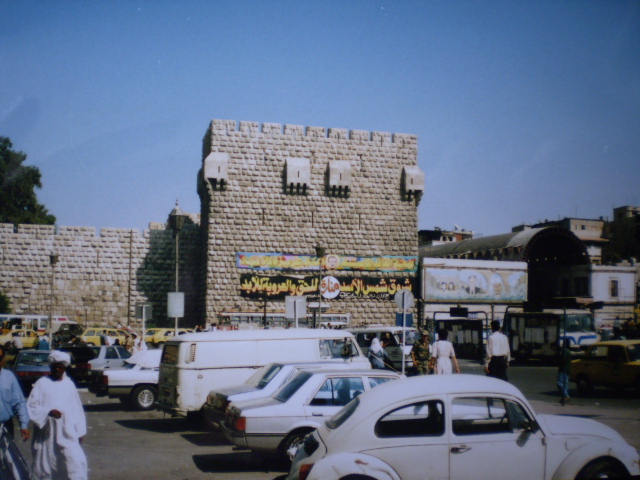 Řidič vyměnil za oknem vlajku Turecka za vlajku Sýrie. Museli jsme schovat všechny prospekty a v žádném případě neprozrazovat, že jedeme pak do Izraele, maximálně do Jordánska. Na hranicích stojí ještě jeden český autobus - ti prozradili, že směřují do Izraele a už tu stojí druhý den a nechtějí je pustit dál ani zpátky. Amatéři:-).